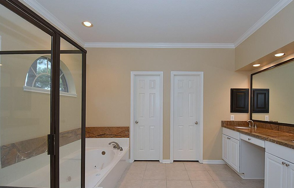 And for some reason , I could not find a before picture of our master bedroom. It on the first floor off the living area and of course opens up to this bathroom. If you scroll back up to that last family room picture, it's through that door to the left of the fireplace. It also has the great floor to ceiling windows like in the living room. And the only update it needed was to be painted.