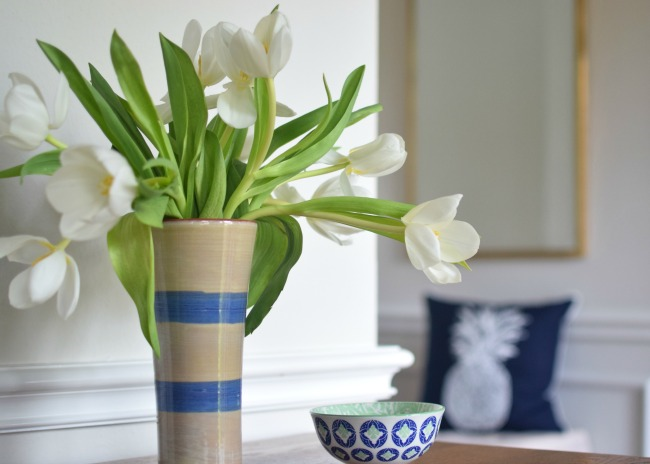 Five - flowers. I love fresh flowers! And so many of the grocery stores have them and they are usually reasonably priced, so I often pick some up on my trip there. The tulips are from Trader Joe's which always has a great selection and the prices are the best!